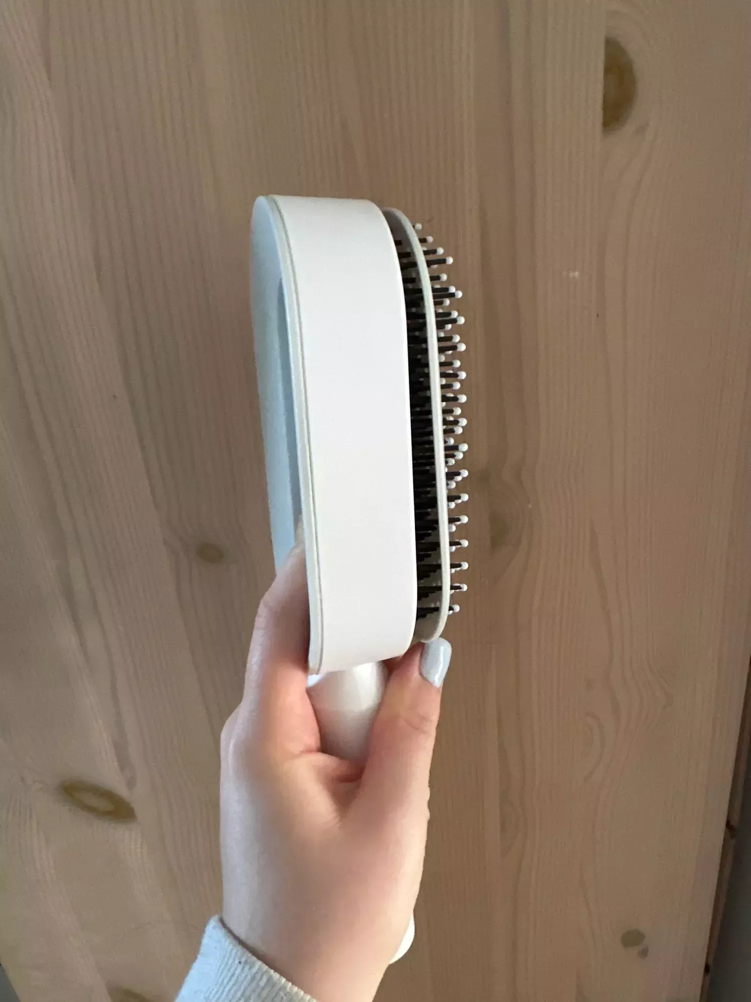 I've been rocking this brush for a few weeks now, and let me you, it's one of the smartest buys I've made in ages. The detangling feature is smooth as butter but still does its job right, even on my thick-as-a-brick, coarse hair. It glides through like a dream without any of that nasty pulling or breaking. Now let's talk about the scalp massage aspect - pure bliss! Every morning feels like a trip the spa with this baby in hand. It works its magic on your scalp making you feel relaxed and ready to start your off right. Talk about self-care! Living where humidity rules supreme can be tough on my hair causing frizz galore. But thanks to this gem and its anti-static material, those frizzy bad hair days are becoming history! This little detail is an absolute game-changer for anyone who knows what it’s like battling with unruly locks daily. But hold up cause there's more! What really makes this product shine brighter than a diamond is the one-key self-cleaning system. Seriously y'all, cleaning has never been easier or more convenient; no more wrestling with hairs tangled around bristles till kingdom come! Just press that button and voila - all clean! So if you're tired of struggling with stubborn knots every morning or just want something that'll give your scalp some love while keeping frizz under control – look no further than this brush here folks because it ticks all those boxes plus some extra ones too!