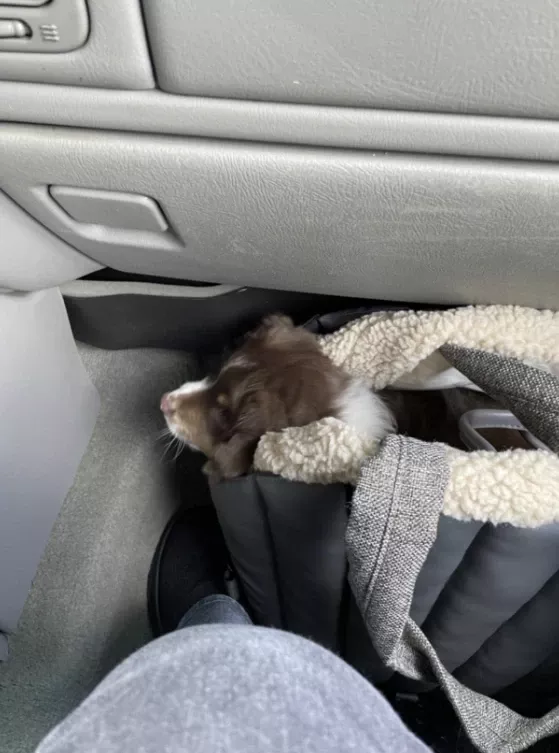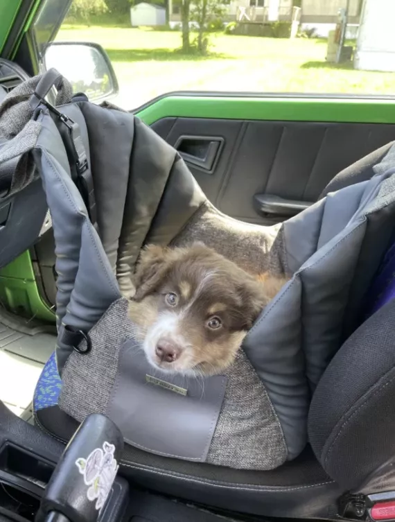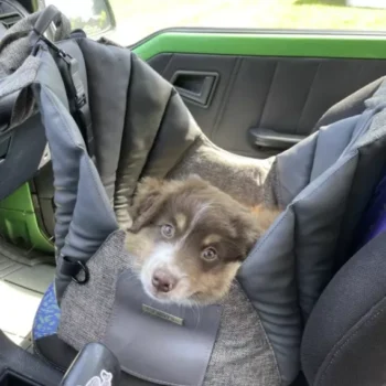 Our dog carrier adapts to any car seat with ease. It includes an adjustable strap for secure fastening and a long handle for additional stability on the headrest.
